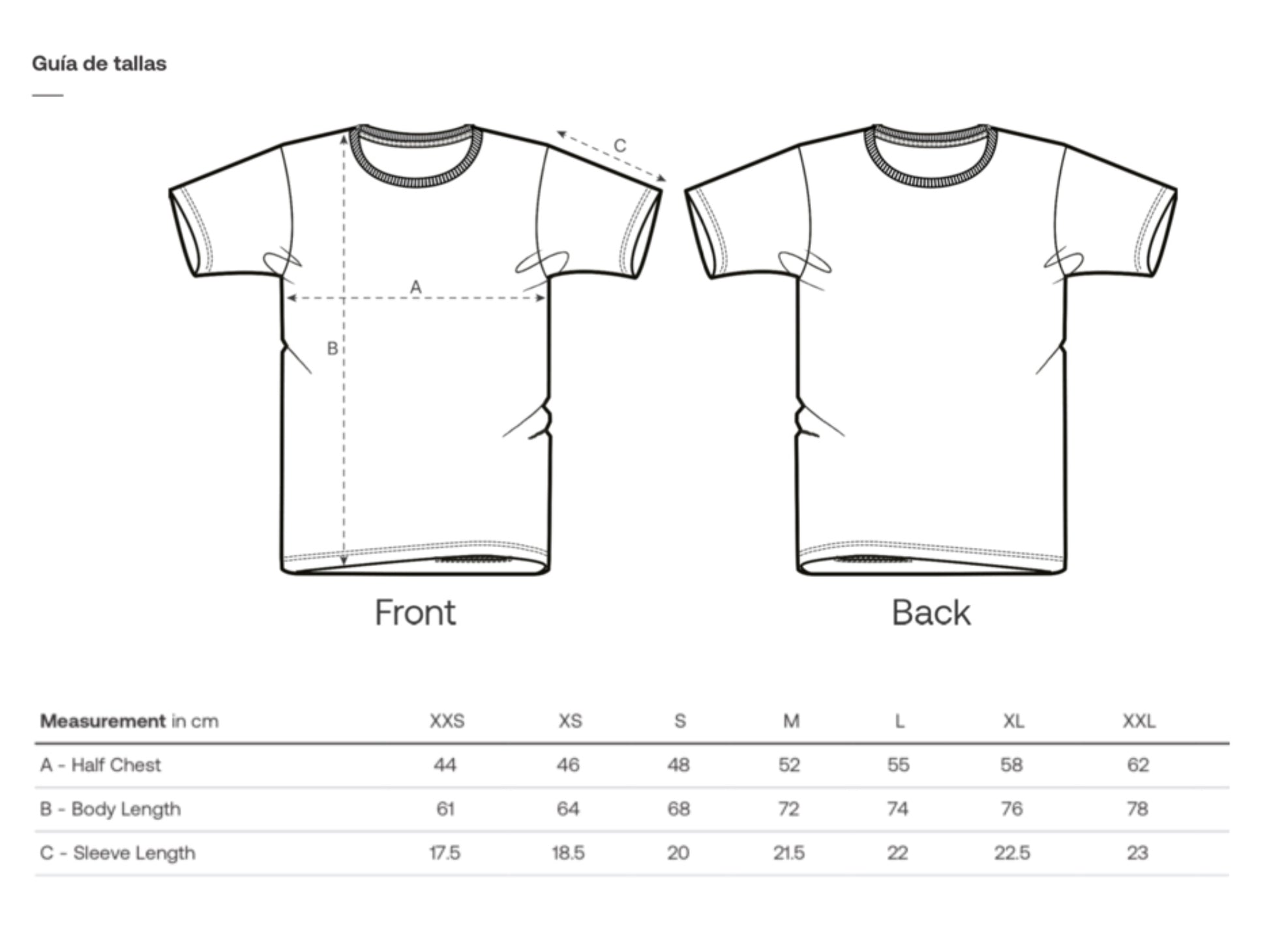 MIRA LA GUÍA DE TALLAS Y COMPRUEBA MEDIDAS CON TUS CAMIS PREFERIDAS, NUESTRO TALLAJE ES UN POCO MÁS GRANDE DE LO HABITUAL, ASÍ NOS EVITAMOS CAMBIOS Y CUIDAMOS UN POQUITO MÁS AL PLANETA.